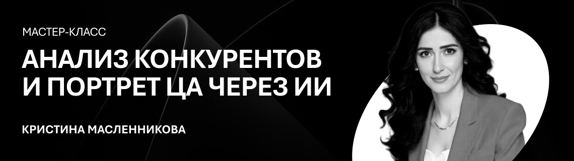1,5 часовой мастер-класс по бизнес-аналитике из ИИ с рабочими тетрадями и практикой. Анализ конкурентов, потребностей и отзывов, сегментация и портреты ЦА, расчеты объемов рынка.