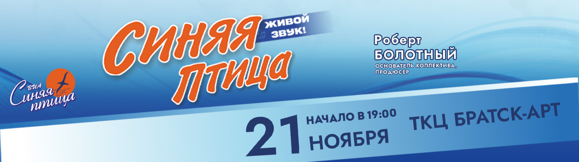 ВИА «Синяя птица» подготовил неповторимый и полный приятных сюрпризов праздник песни! Уйти с головой в атмосферу золотых 70–80-х, услышать новые песни, насладиться любимыми хитами ансамбля и вернуться назад полными свежих сил и энергии, вас приглашает легендарный ВИА «Синяя птица».