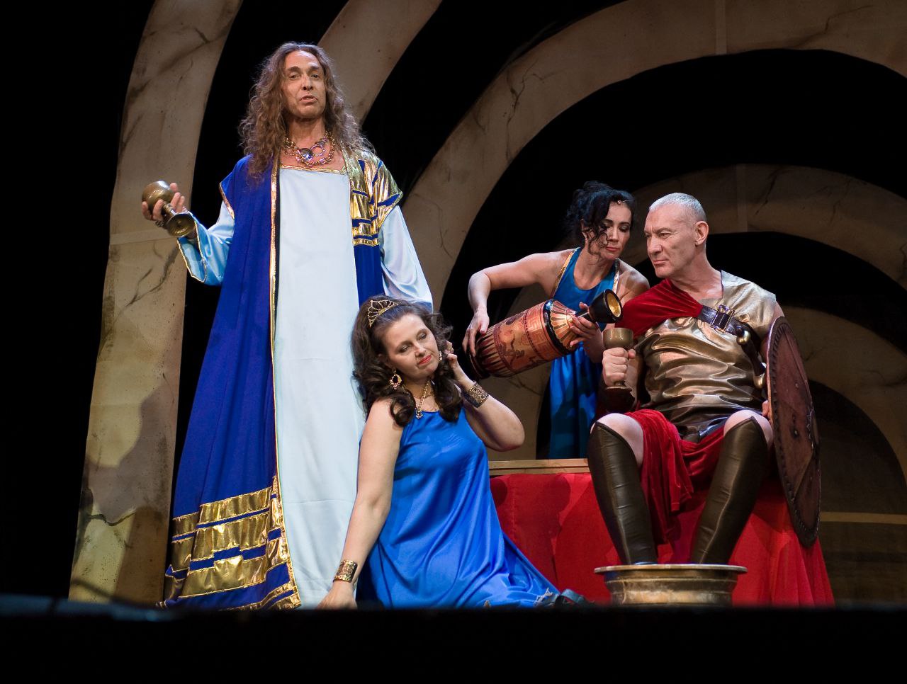 Спектакль пронизан тонким философским юмором, страстью и великолепием богатства и красоты! Режиссёр-постановщик — Сергей Захарин.