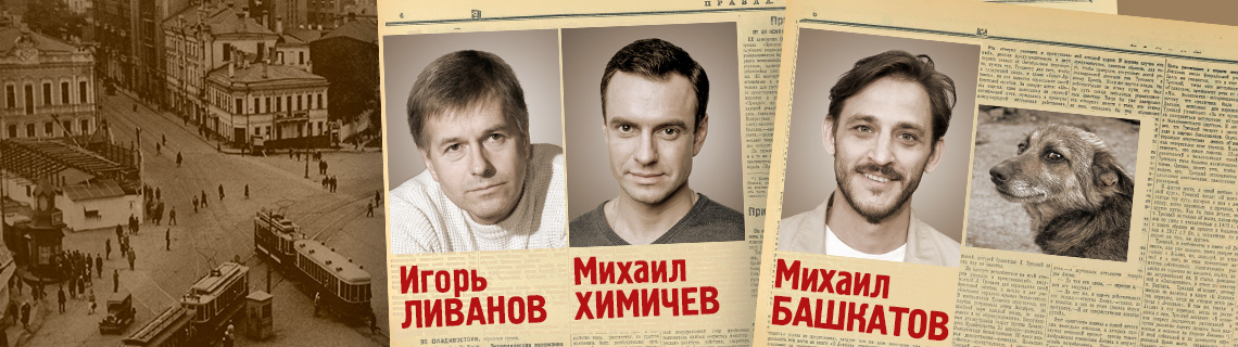 Игорь Ливанов, Михаил Химичев и Михаил Башкатов/Антон Богданов в спектакле по культовой повести Михаила Булгакова «Собачье сердце».