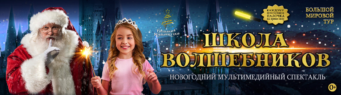 "Школа волшебников" - это уникальный мультимедийный спектакль на огромном экране, рядом с которым оживают сказочные герои. Чары начнут действовать после взмаха волшебной палочки, которая выдается каждому зрителю.